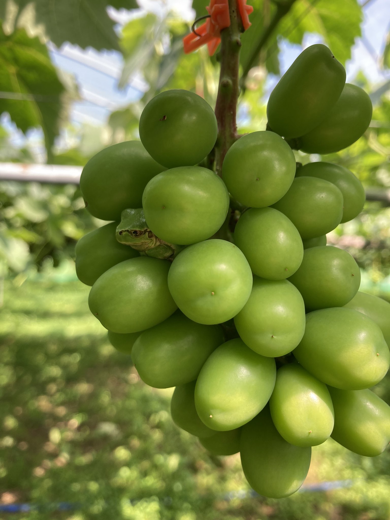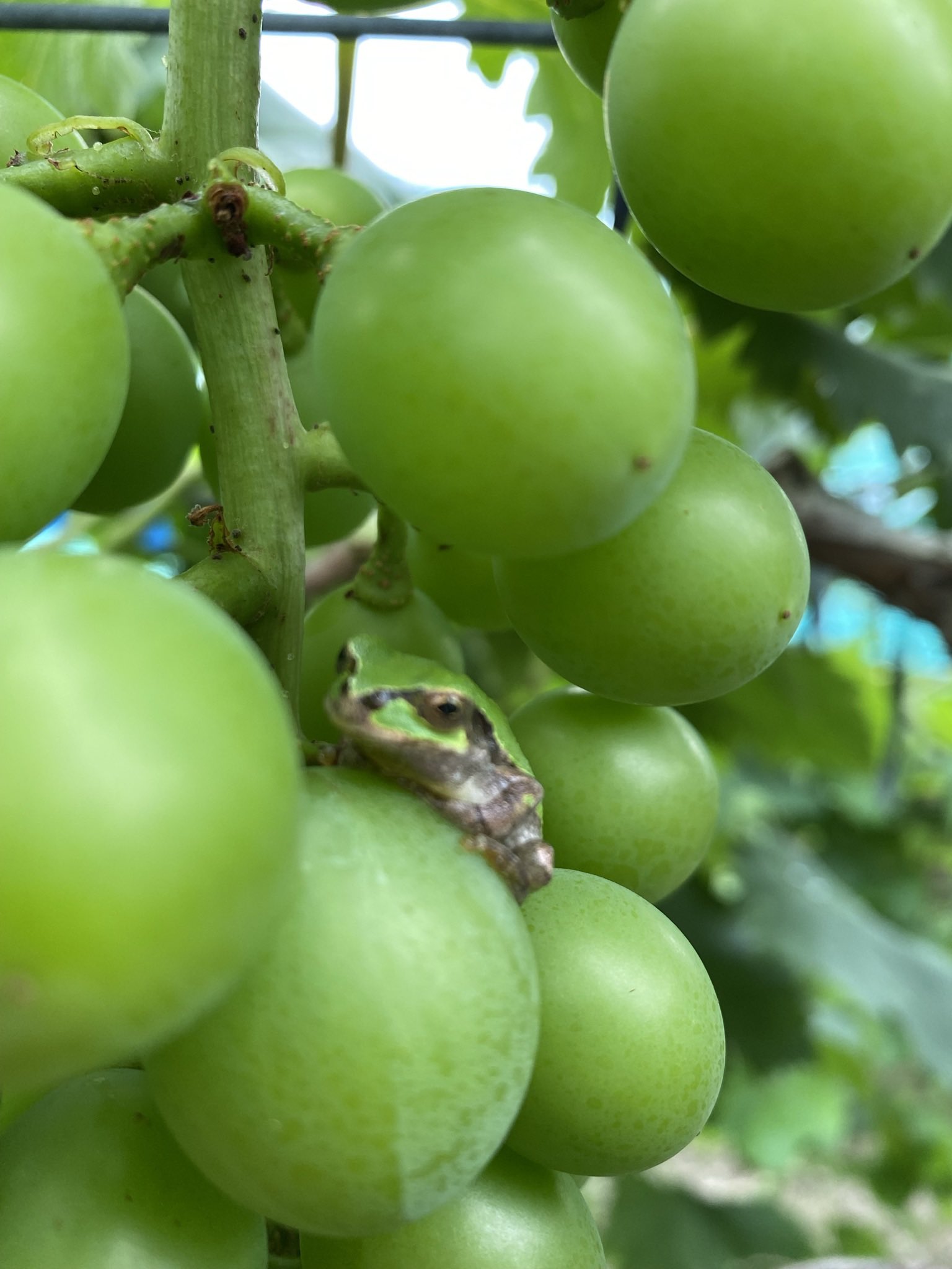 @suzuking_44 昨日、バイトで巨峰の粒を落としていたら、中からカエルが飛びだして来て、心臓が止まりそうになりました。写真を見て、まさにそれ!と思いました🤣