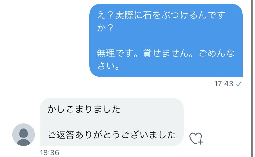@kukiwakame3385 @J1x2A2GhfhvGQWF 「売って欲しい・〜の条件で譲って欲しい」や「そのもの役割を果たす形での撮影の為に貸してほしい」だったならまだしも、目的が石ぶつけるって内容で貸してくれる人はまず居ない…