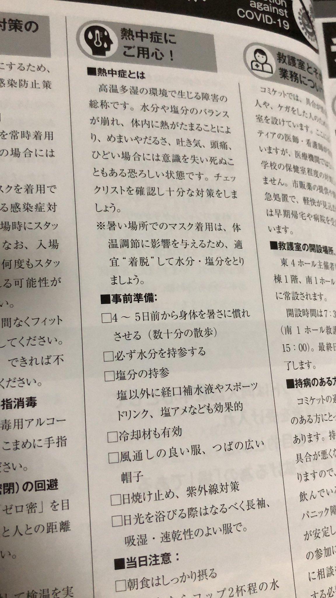 私は昔からコミケ(特に夏)はイベントではなく戦場と何度も言っておりますが、コミケのカタログに記載されてる事前準備の欄を見れば夏のコミケの恐ろしさが分かる人には分かります https://t.co/MHcD9WPbvR