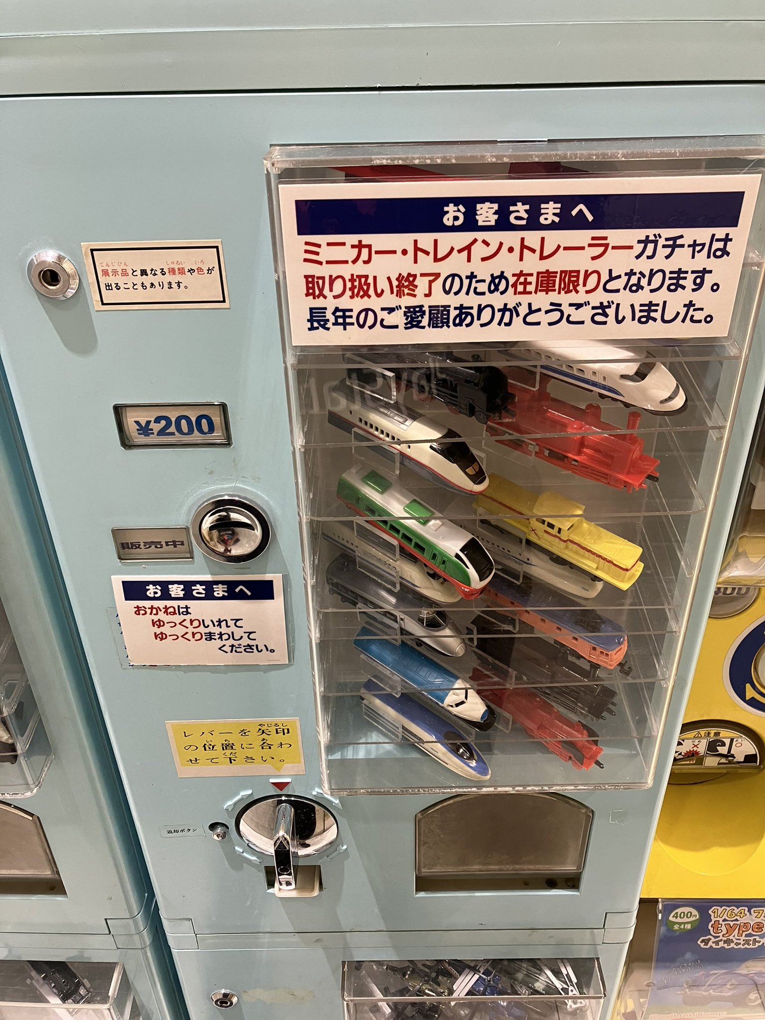 @osakaknjou103_2 @fatechallenger1 うちの地元のイオンの玩具売り場にもモーターマックスのミニカー販売機の隣にこの販売機設置してある。そうか、無くなるのか。残念ですね!🤔