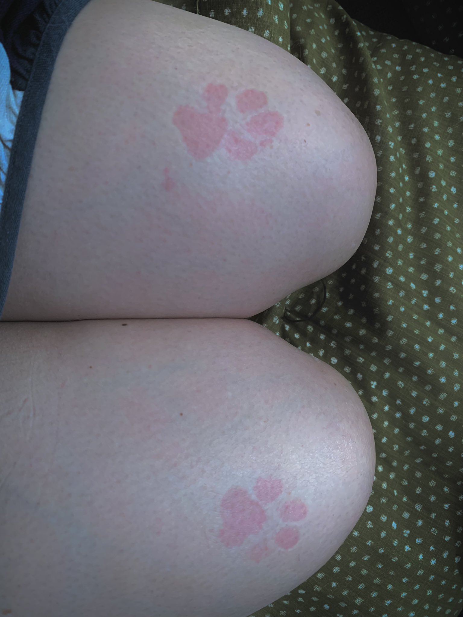 @kotapome1 わたしも7kg弱のにゃんこに肉球跡付けられました🐾🐾