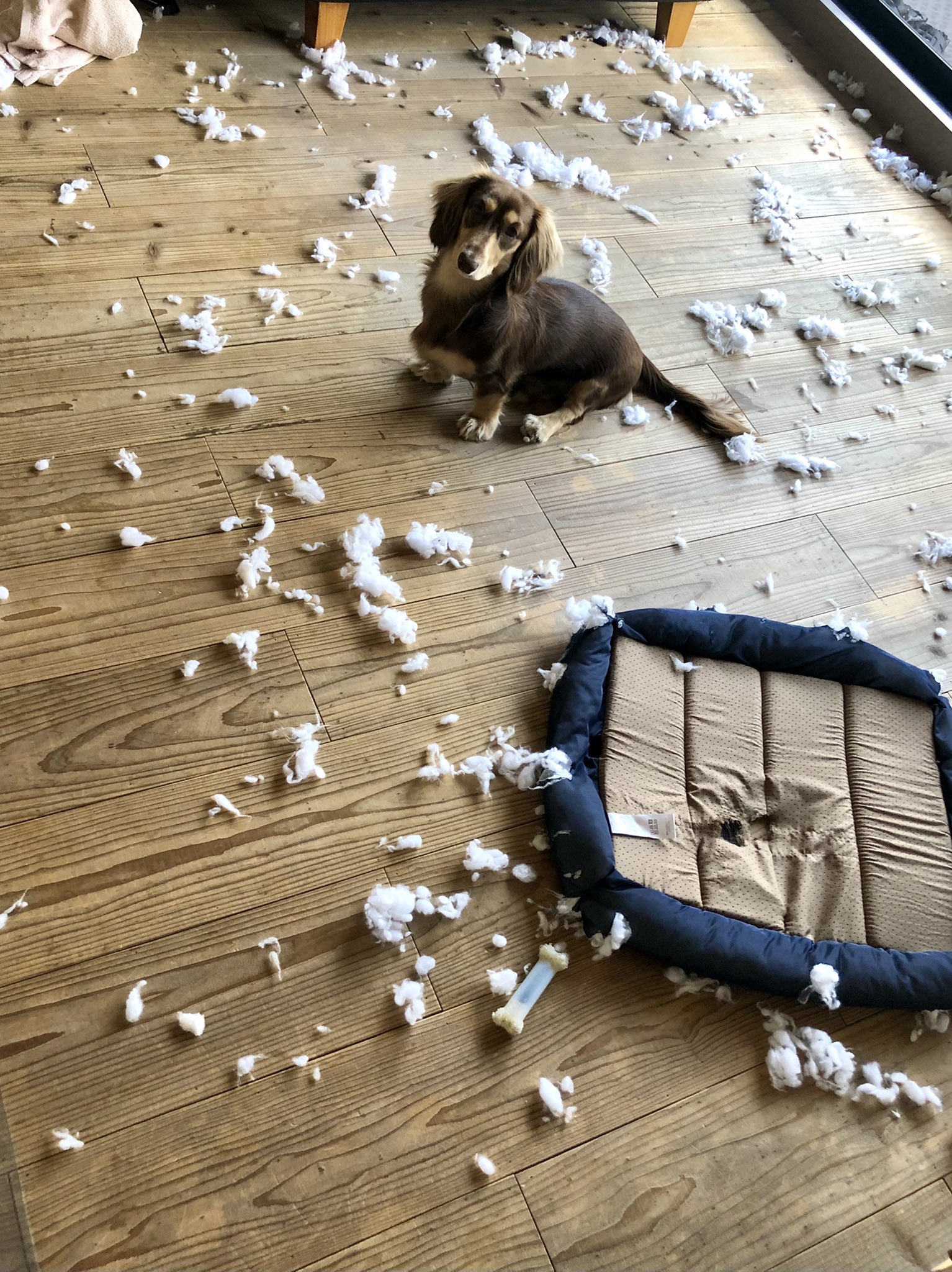 @kantarodaks え?あれ?なんだワン?これからルンバ回すワンベッドは質の良い天然綿と交換したワンあと、針と糸でベッドの穴を修繕するところだったワン