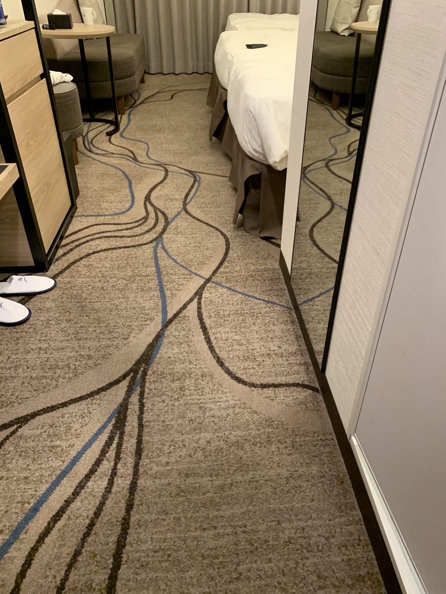 @na_o_76 ケーブルが雑に床を張っているかと思ったらカーペットの模様だったんですねうん整理したくなりますね