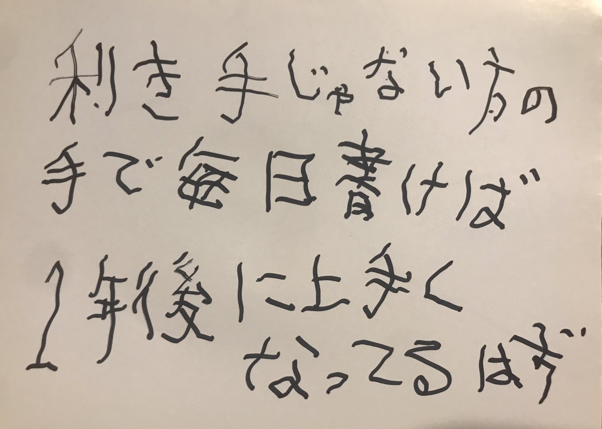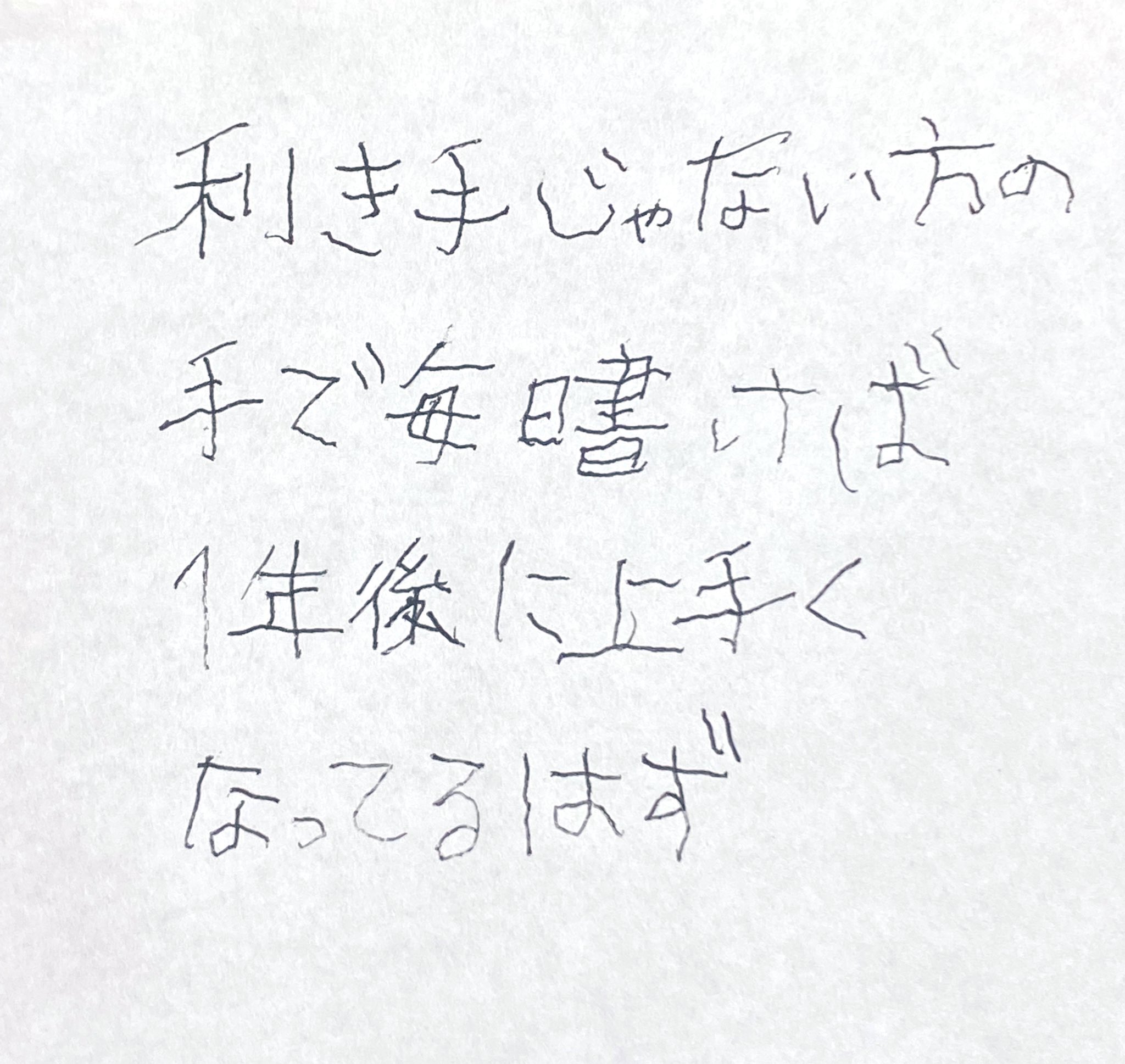@TAQACY 僕もやってみました。基本的には右利きなんですが、仕事柄左手での作業も多く、左手のほうが握力も強く、左手でも箸を持てるぐらいではあるんですが…やっぱり字を書くとヨレヨレになっちゃいますねw https://t.co/mj2zQYOGFM
