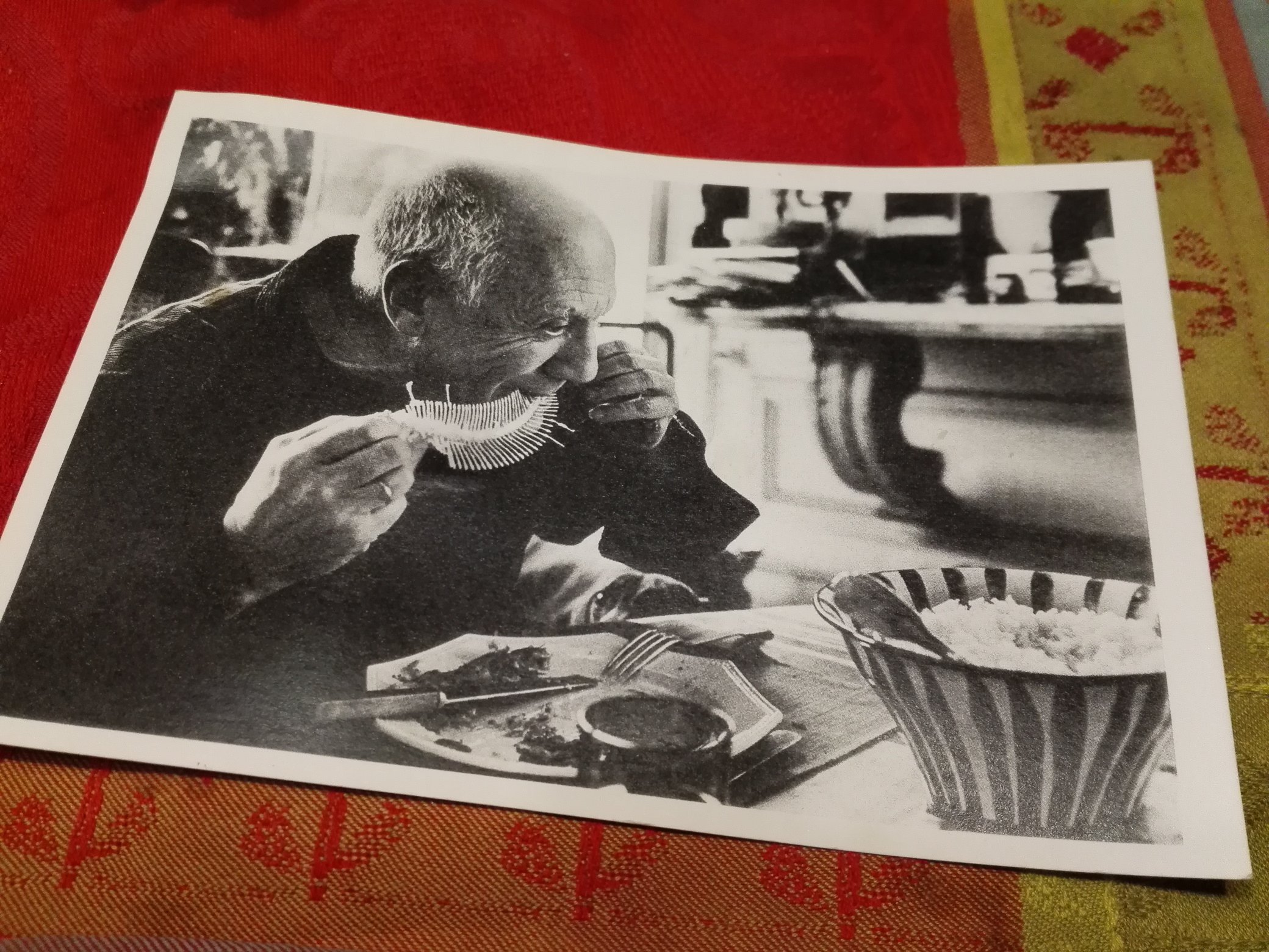 1957年に撮られたピカソ。魚の骨が楽器のように見えて美しいため、数あるピカソの写真でも一二を争うくらい好きですわ。 https://t.co/ZbeuijcZLw