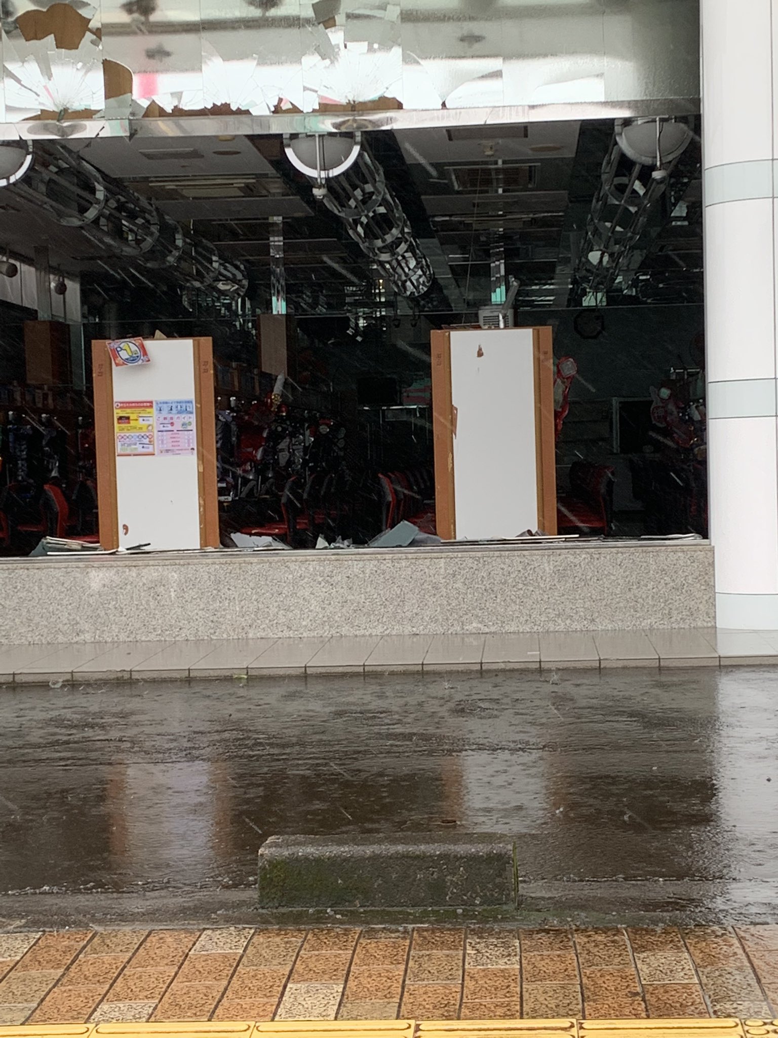 近所のパチ屋壁消えてたんだが…台風やべーわ#台風14号 https://t.co/YhjTj4YlPu
