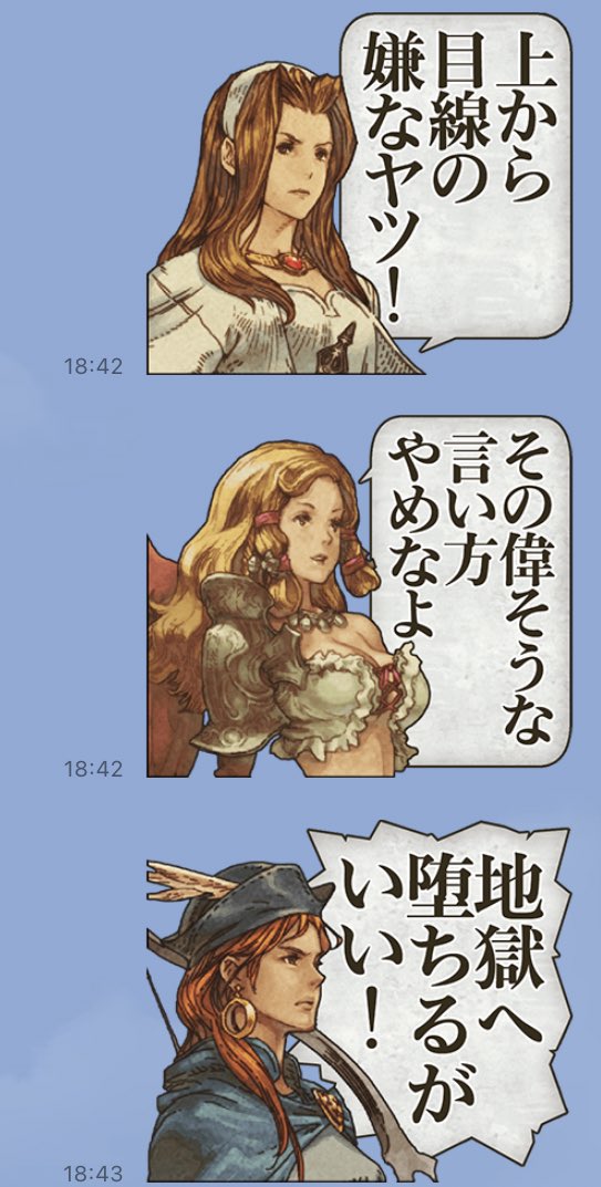 タクティクスオウガのスタンプ、知れた仲の相手でも使うのがはばかられるレベルの罵倒用スタンプが多すぎてウケる https://t.co/GDpJMGEgjO
