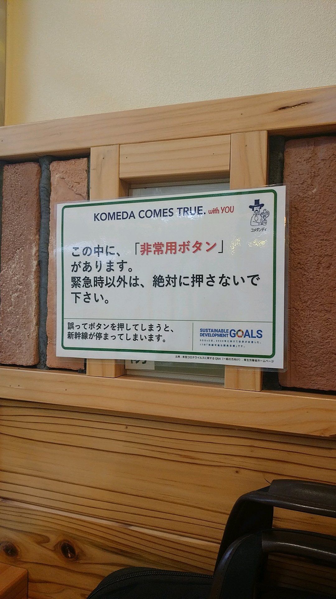 掛川駅のコメダにある絶対に押してはならない、新幹線を停めてしまうボタン。 https://t.co/rMWrVs9dzY