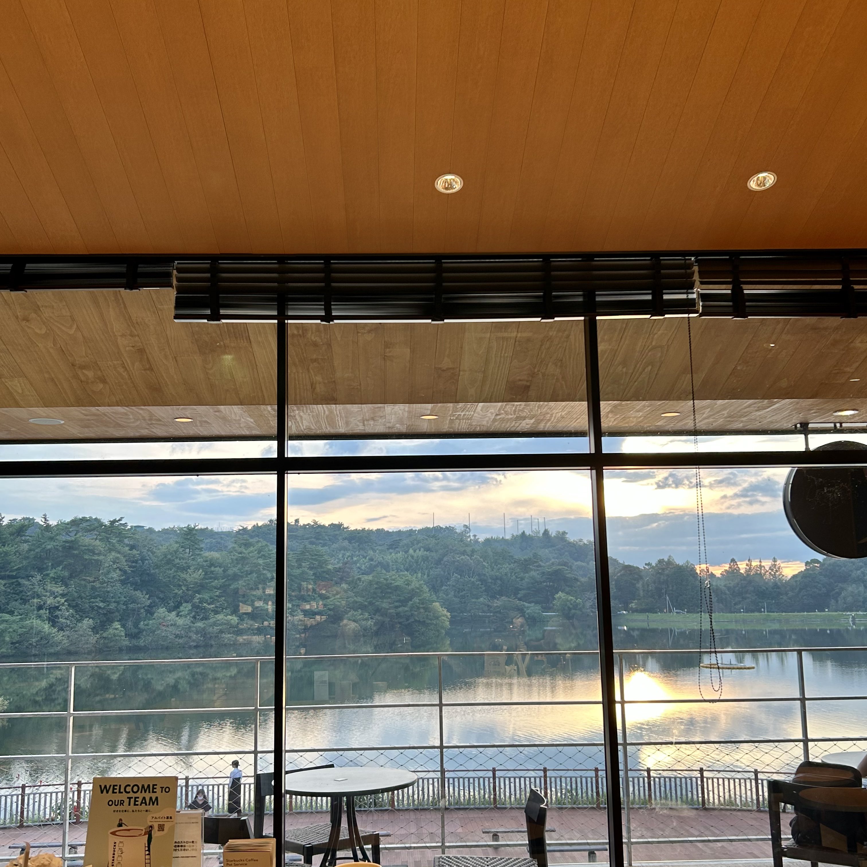 昨年4月にオープンした「スターバックスコーヒー豊田鞍ケ池公園店」。時間帯によってはこんな景色が楽しめます。