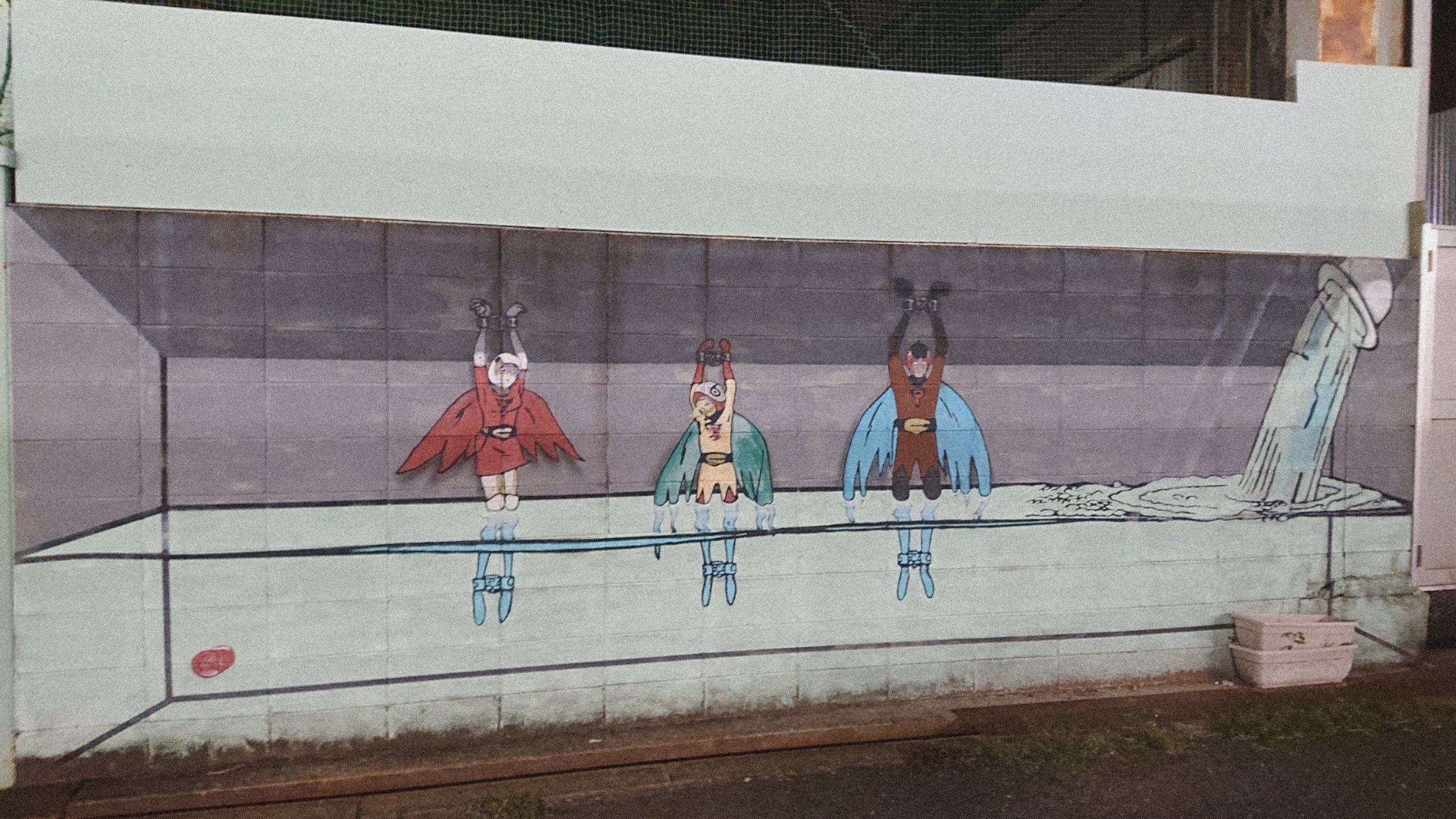 【何故】大阪の工場地帯で「水攻めにあうガッチャマン」のアートが発見されTwitterで話題にw