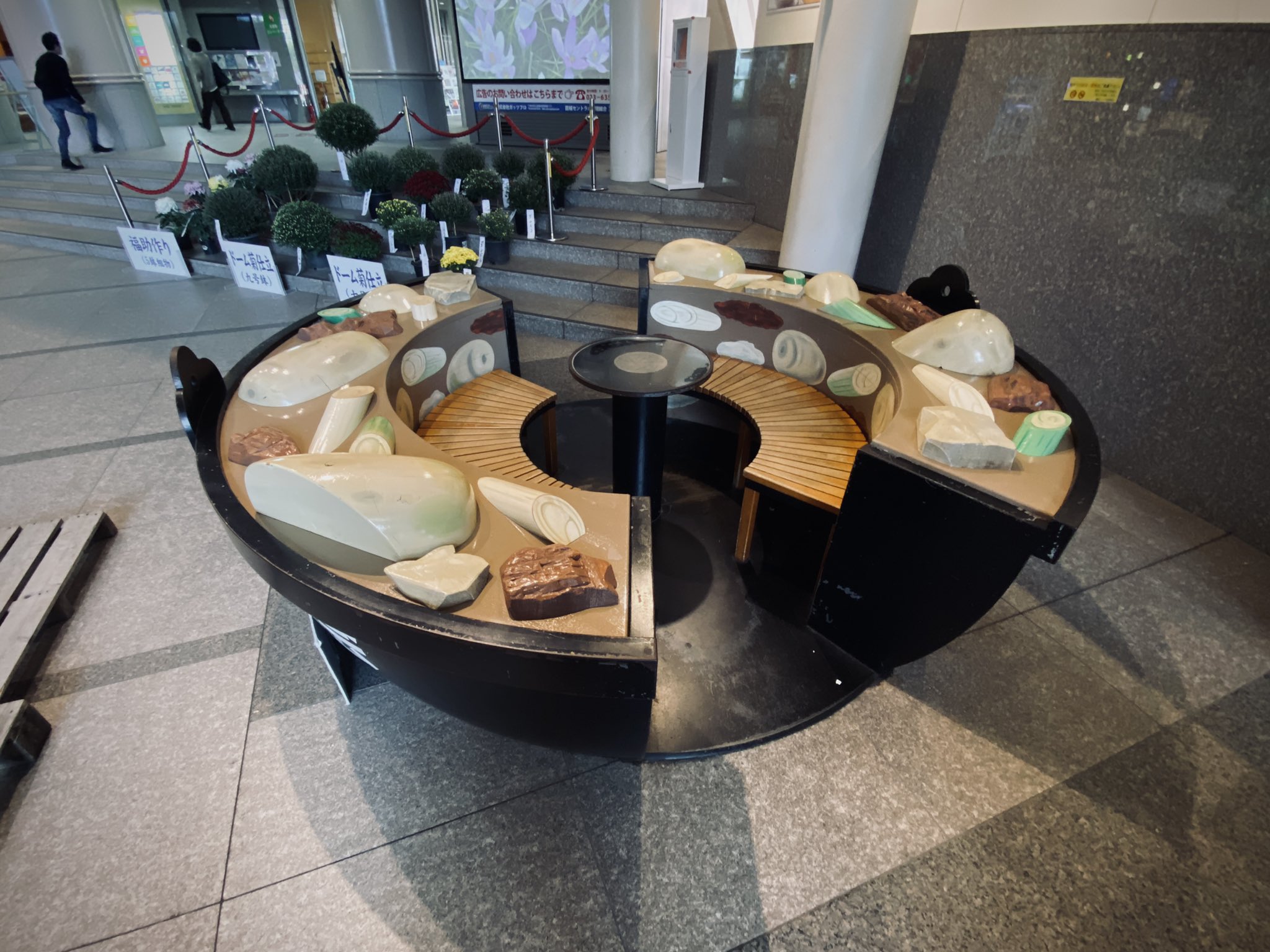 山形県民が芋煮に命かけてるのは聞いていたが、座ると自らが芋煮の具になれるベンチがあるレベルで好きなのね。 https://t.co/RjxJGqAYJv