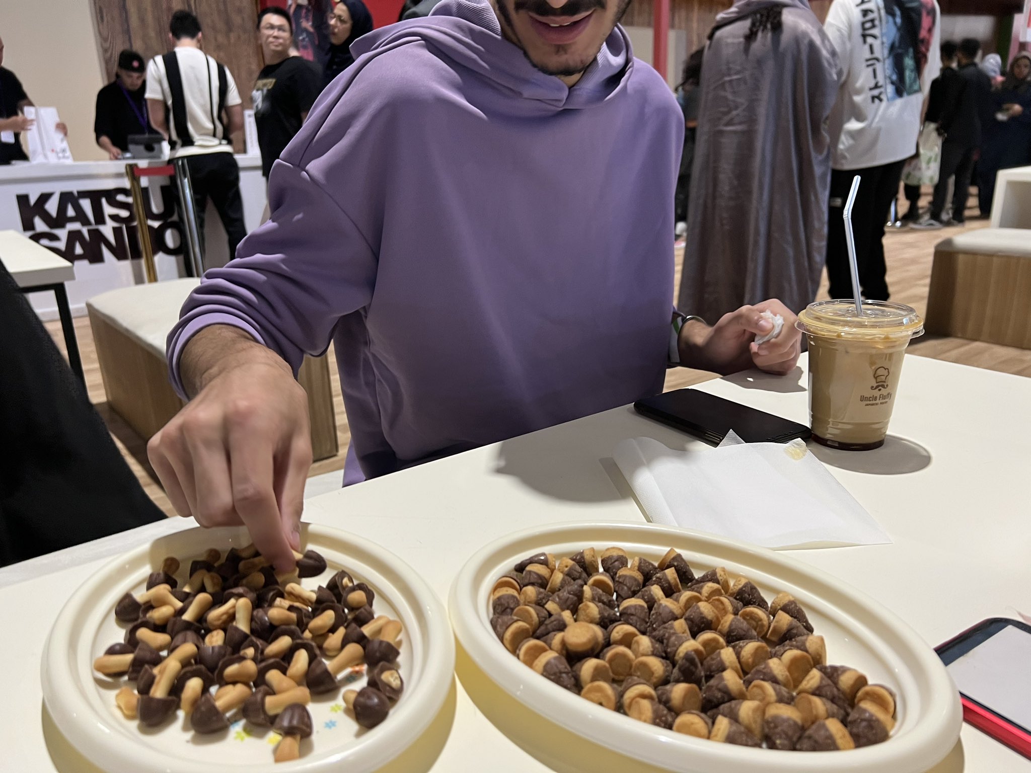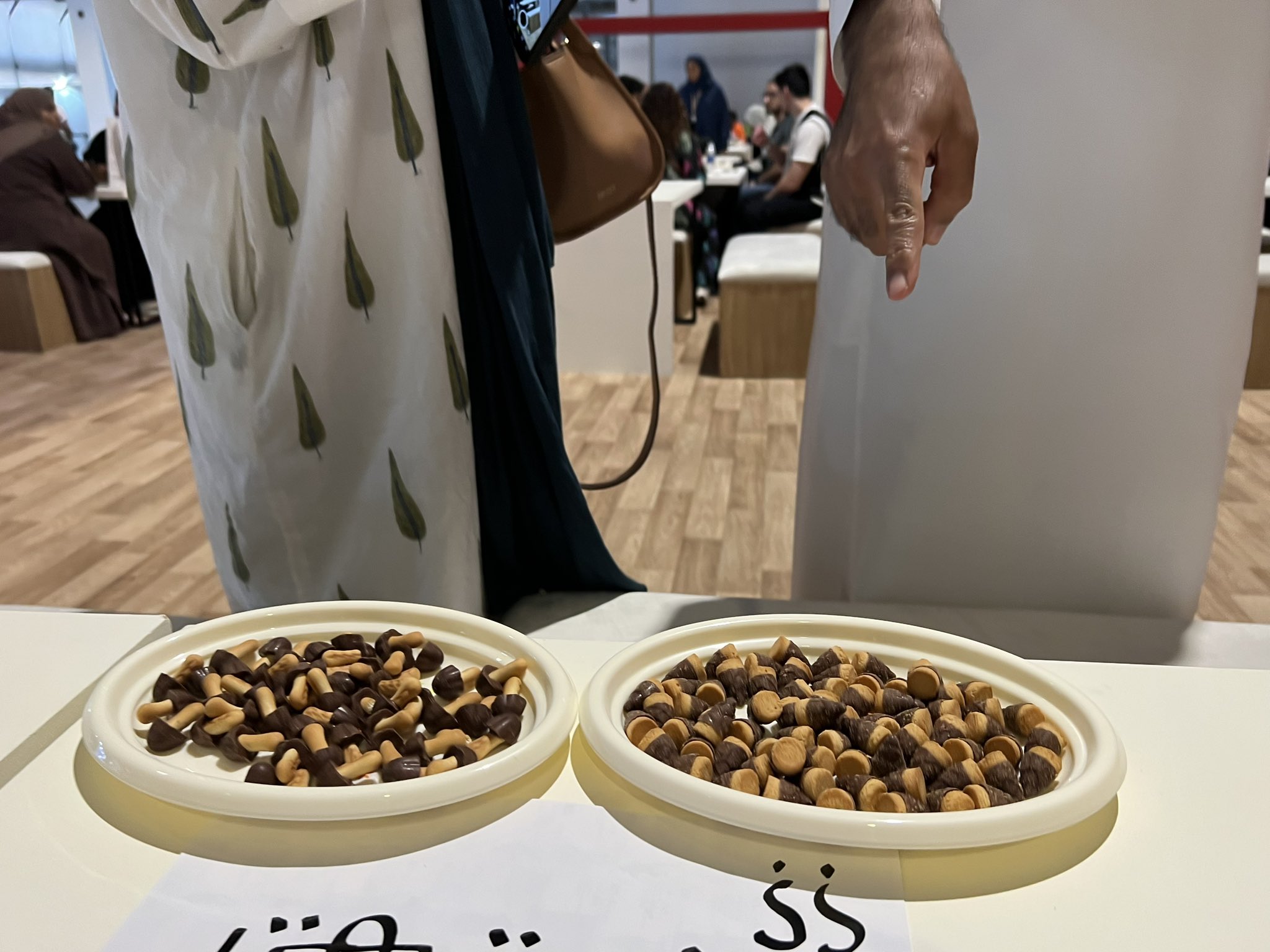 サウジアニメエキスポに来場されているアラブの方々にきのこ、たけのこ両方を食べていただいて、どちらが美味しいか決めてもらいました。#第一次中東きのこたけのこ戦争 https://t.co/736O2lwRti
