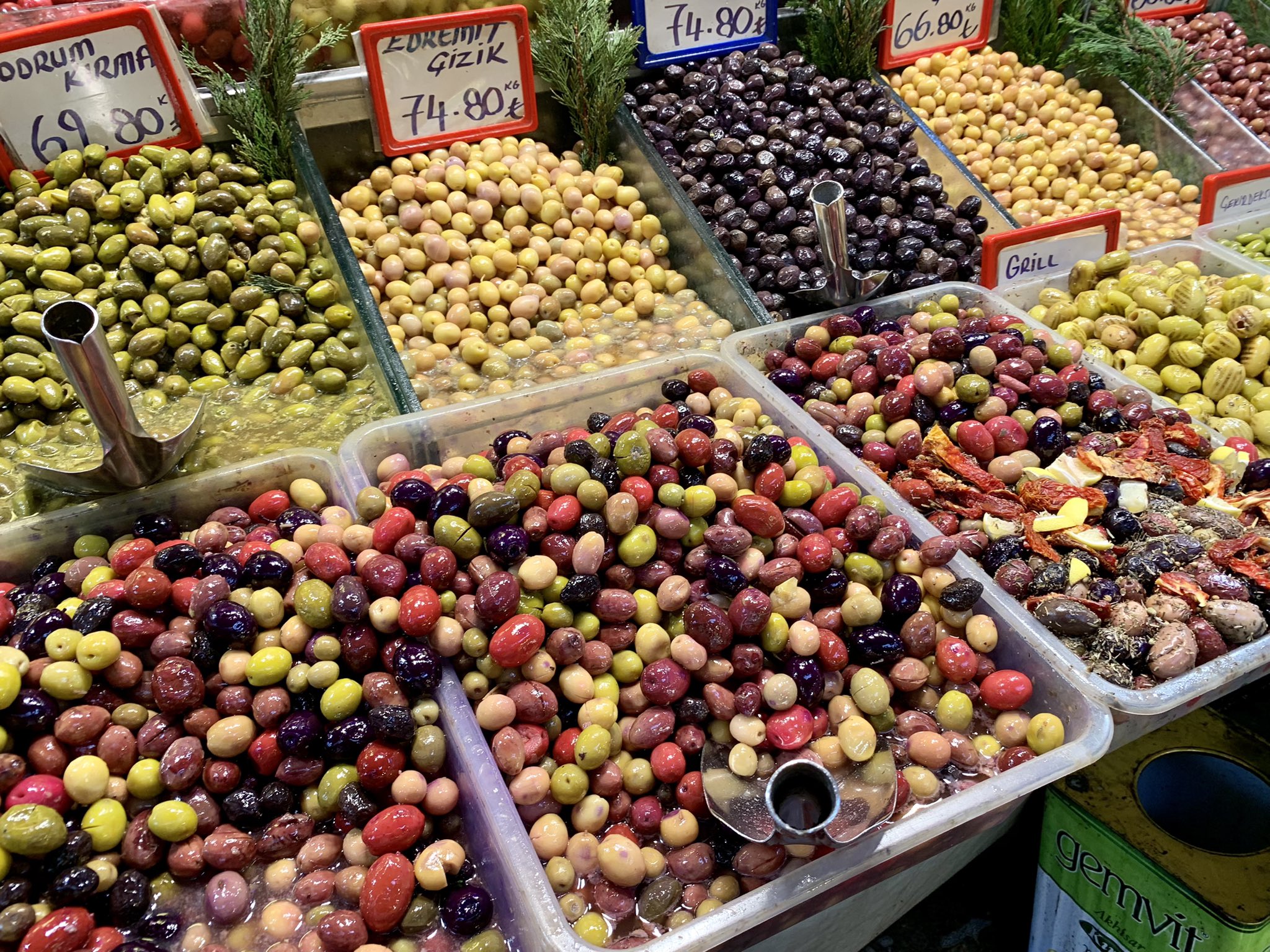 トルコのオリーブの実は赤いのもあり、一般的な緑や黒と混ぜ合わせると、マーブルチョコみたいになる。店員さんがミックスする場面も目撃したが、手慣れたもの。商魂のたくましさと、センスの良さを同時に感じた。イスタンブールのアジア側、カドゥキョイの市場通りで。 https://t.co/jBzTJNFmIm