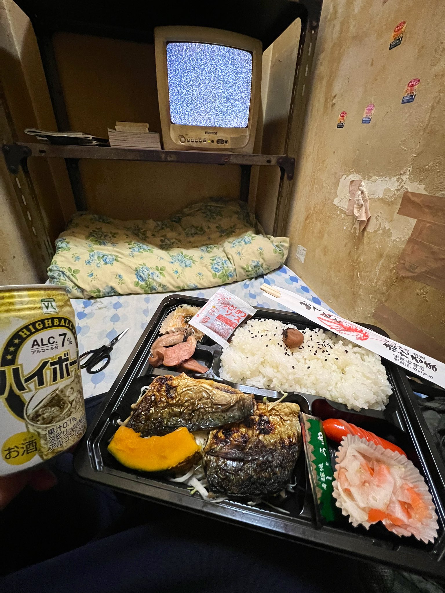 折角なので部屋食にしましょうかね!しかし獣臭ヤニ臭アジア臭、扉閉めると気絶しそうになる、、 https://t.co/gduOPHeMTi