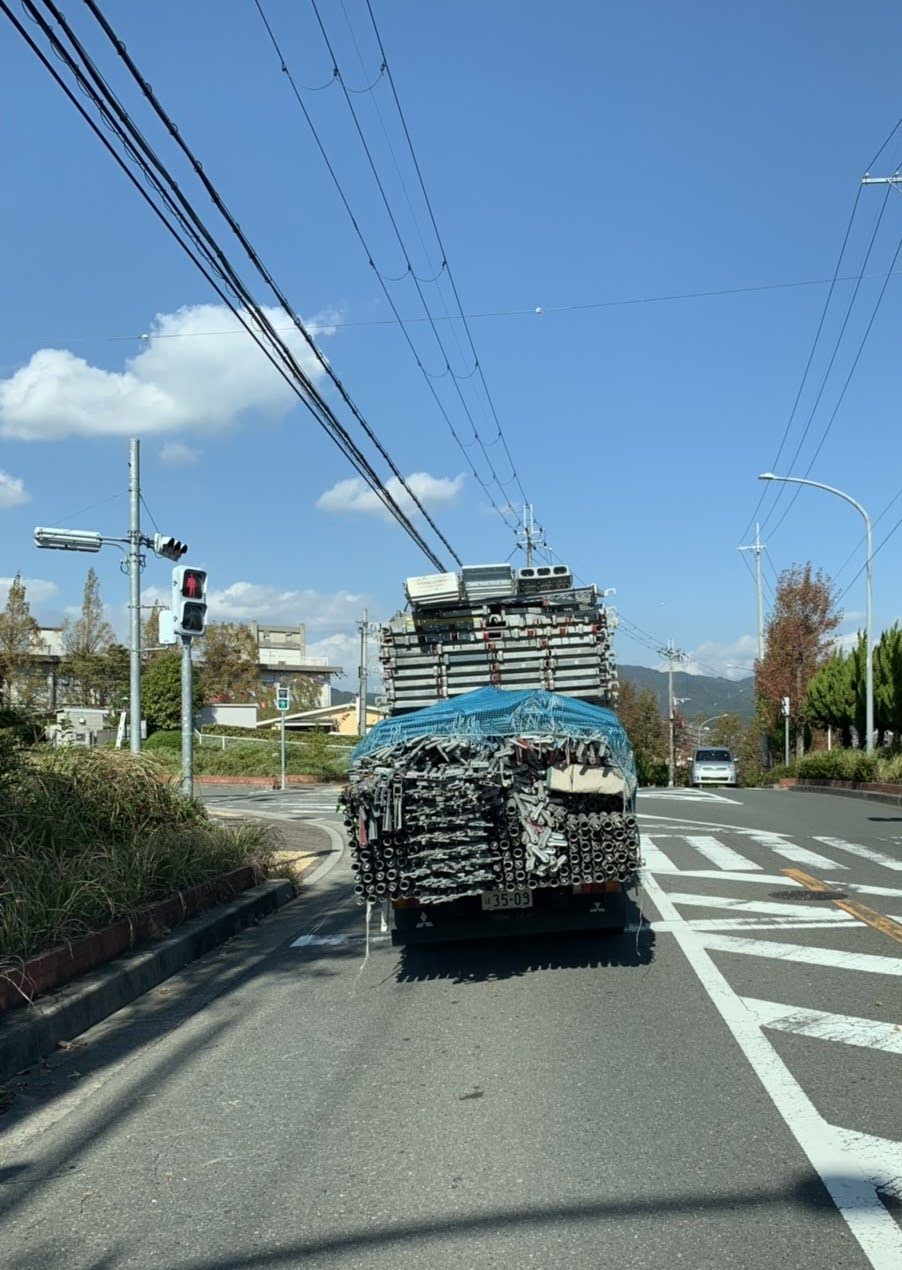 @1nzFullThrottle 大阪で足場してた時は過積載は当たり前だし、なんならパトカーがきてもそのままスルーされるって感じで逆に東京だと2トン車の煽りの高さぐらいの積載が、150kg超過で捕まることあったので、地域によって善し悪し関係なく過積載はスルーされる地域もあると知ったな〜(写真は大阪、2トン車にて) https://t.co/VYL6Pr2W8M