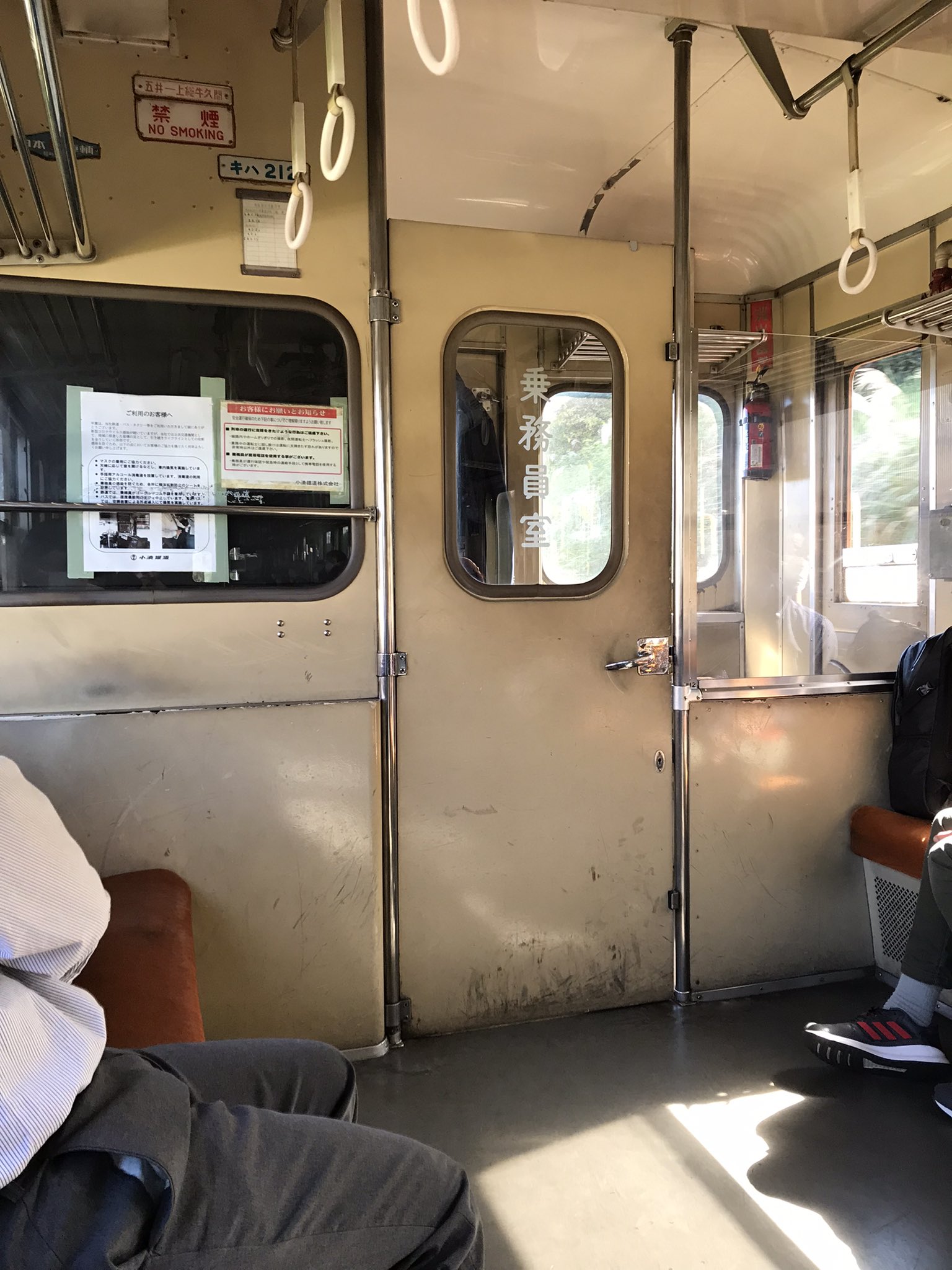 今、小湊鐵道、五井から乗り込んだところ発車直後に非常停止。運転士さんが悲鳴上げて出てきた。見たところ、でっかいスズメバチ。車掌が駅からハチジェット持ってくるも右往左往するので、決死隊を志願して戦ってきました。5分遅れで出発。うん、いきなりおもしろいぞ、小湊鐵道。 https://t.co/OChxDsOJxq