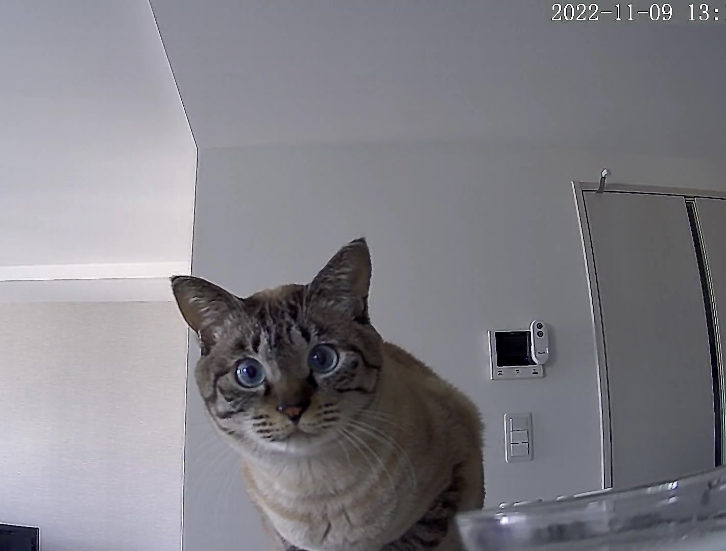朝カリカリ補充するの忘れてた😭お昼ご飯あたらなかったみたいでカメラに抗議してくるごめんなさい😭😭😭 https://t.co/Mn9LTN0Jz0
