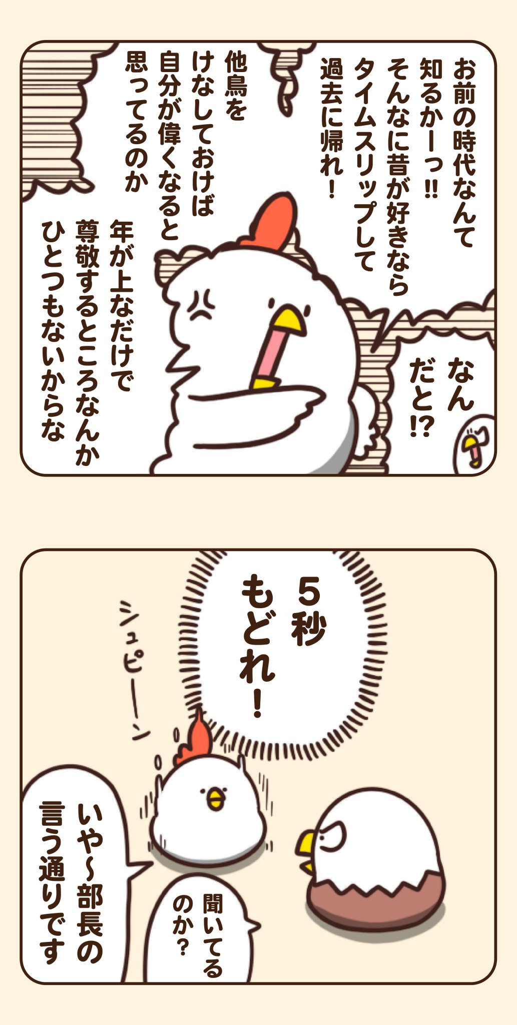 @debu_dori なるほど、ハゲタカ部長に向かって悪口言ってから5秒前に戻るのか!うまいねでぶどり先輩😄しかしこれ、未来変えてるよね?
