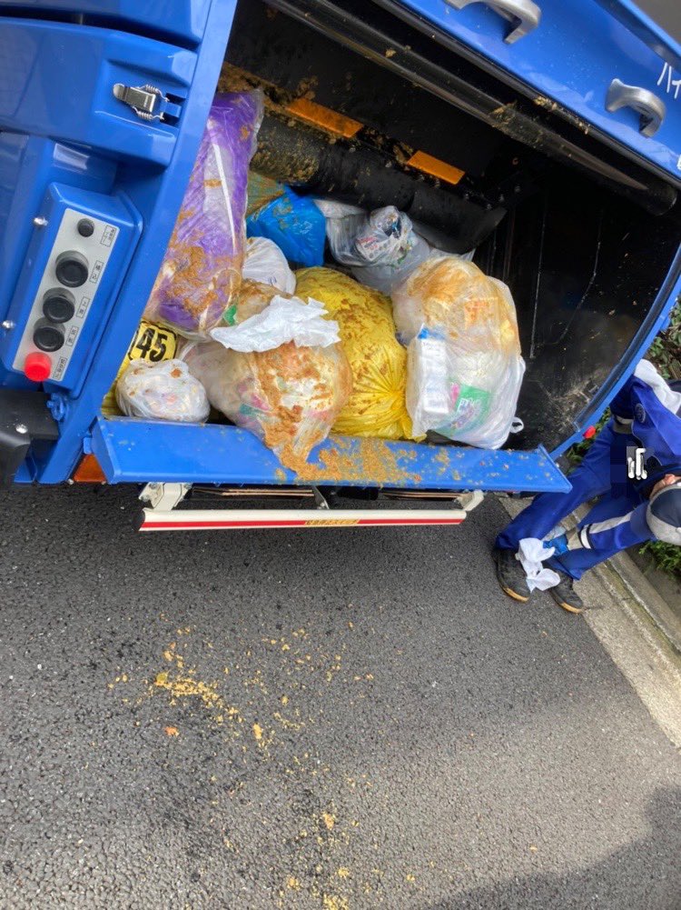 カレーをそのまま捨てないでください。おはようございます。ゴミ清掃員の滝沢です。僕らはよくカレー爆発の犠牲者になります。全身カレーまみれになるので、じゃがいもの気持ちがよくわかります。食べ切れる量、冷凍などして頂けると助かります。この日の相棒は靴を拭いてます。#ゴミ清掃員の日常 https://t.co/dX2SjUipCl