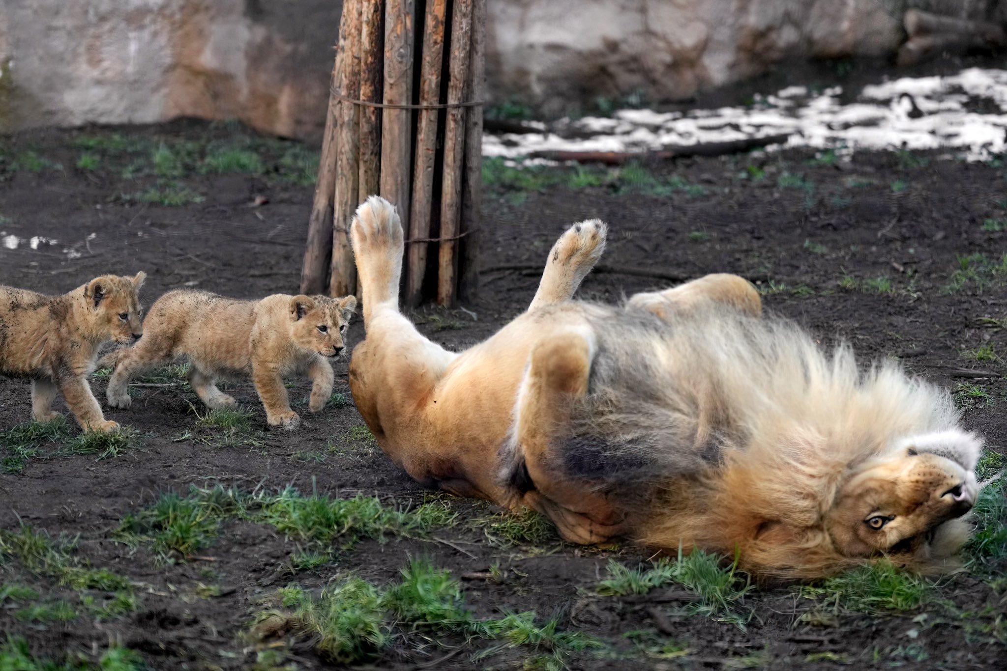 娘たちが来たら何して遊ぼうかなと、ワクワクして待っているオリトお父さん。まさかの敏感なところをタッチされ、思わずのけ反ってました。#旭山動物園 #ライオン https://t.co/uURR2gADeG